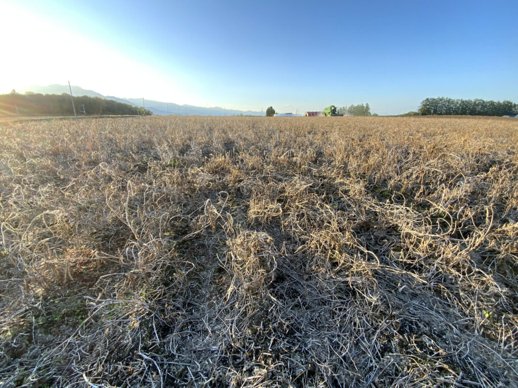 状態B下ランク圃場:多量倒状、青茎、青葉あり