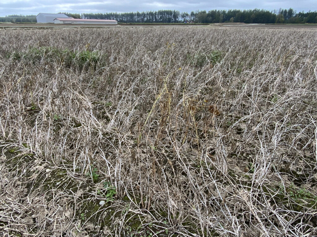 10月4日 N様 Bランク圃場:一部倒状、青茎葉水分有り お客様名N様地域更別村刈り取り時期10月4日使用面積3.8haかかった時間4.5時間状態Bランク圃場:一部倒状、青茎葉水分有り刈り取りロス少ないお客様から一言機会があればお願いします。